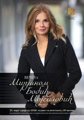 Вече са Мирјаном Бобић Мојсиловић биће одржано у сриједу, 25. марта 2026. године са почетком у 19 часова у Изложбеном салону Народне и универзитетске библиотеке Републике Српске.