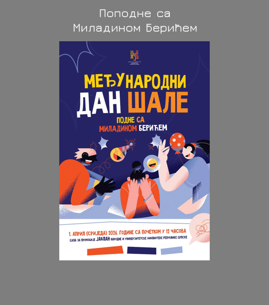 Поводом Међународног дана шале, Народна и универзитетска библиотека Републике Српске организује дружење са књижевником Миладином Берићем, које ће бити одржано 1. априла 2026. године тачно у подне у Сали „Јаблан“.
