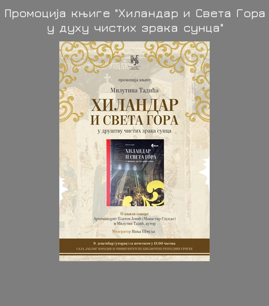 Промоција књиге "Хиландар и Света Гора у духу чистих зрака сунца"